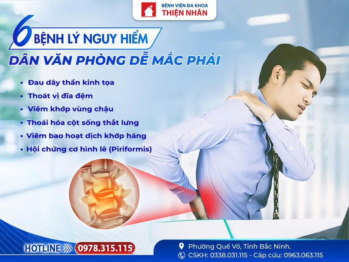 Đau mông tê chân ở dân văn phòng có thể là dấu hiệu 6 bệnh lý nguy hiểm. Khám ngay tại Bệnh viện Thiện Nhân để được chẩn đoán và điều trị.