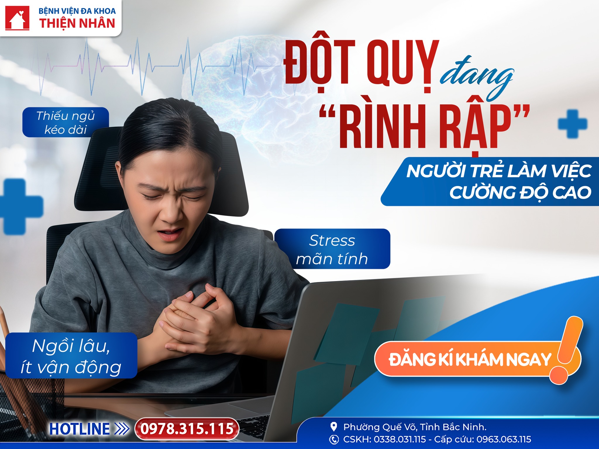 Trong suy nghĩ của nhiều người, đột quỵ vẫn là căn bệnh chỉ xảy ra ở người lớn tuổi hoặc người có bệnh nền. Tuy nhiên, thực tế những năm gần đây cho thấy đột quỵ đang trẻ hóa nhanh chóng và trở thành mối đe dọa nghiêm trọng đối với nhóm người trẻ trong độ tuổi lao động, đặc biệt là dân văn phòng và những người làm việc trí óc cường độ cao.