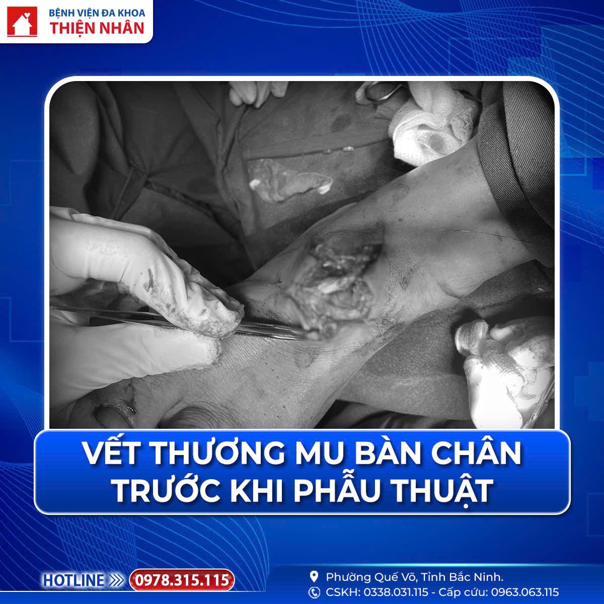 Anh N.V.T, 32 tuổi, cư trú tại phường Đào Viên, tỉnh Bắc Ninh, được đưa đến khoa trong tình trạng tổn thương nặng sau một tai nạn sinh hoạt. Bình thủy tinh rơi xuống trúng mu bàn chân trái, gây vết thương rộng khoảng 2×3 cm, chảy máu nhiều và bờ vết thương nham nhở. Lộ đầu gân duỗi ngón I bị đứt khiến anh mất khả năng duỗi ngón I bàn chân trái. Trước khi đến viện, anh đã được sơ cứu bằng băng ép tạm thời.