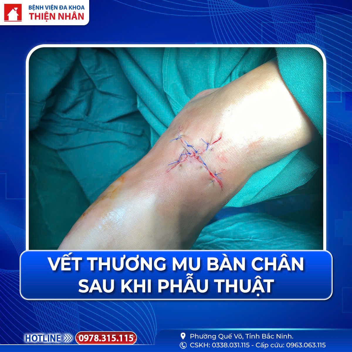 Phẫu thuật xử lý vết thương hở mu bàn chân do tai nạn sinh hoạt, đứt gân duỗi ngón I. Ca điều trị thành công, hồi phục tốt và xuất viện an toàn.